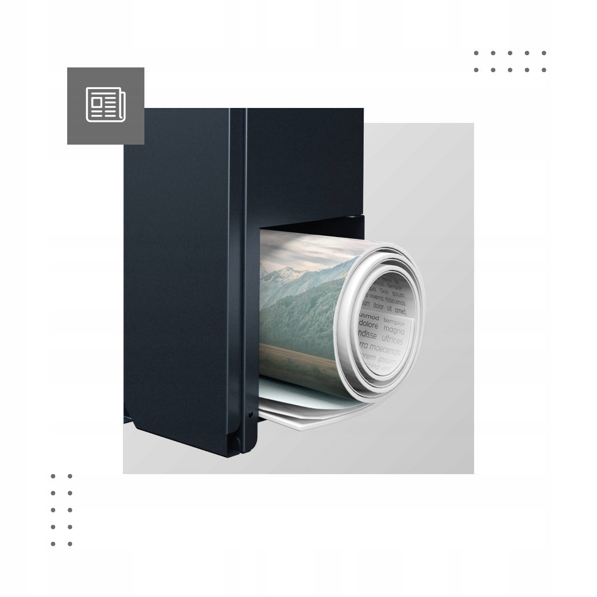 Każda skrzynka wyposażona jest w osobną komorę na zwinięte gazety, ulotki lub broszury. Gazetnik w dolnej części skrzynki skutecznie oddziela ważną korespondencję od materiałów reklamowych.