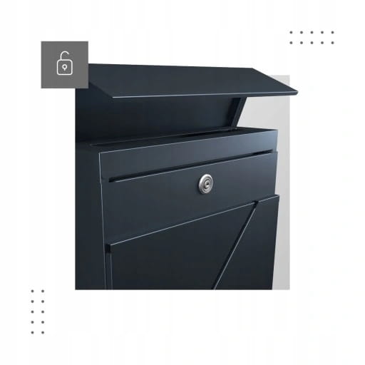 Zamek schowany jest pod górną pokrywą, więc nie rzuca się w oczy, ale pozostaje wygodnie dostępny dla użytkowników. Zamknięcie na klucz zabezpiecza korespondencje przed postronnymi osobami.