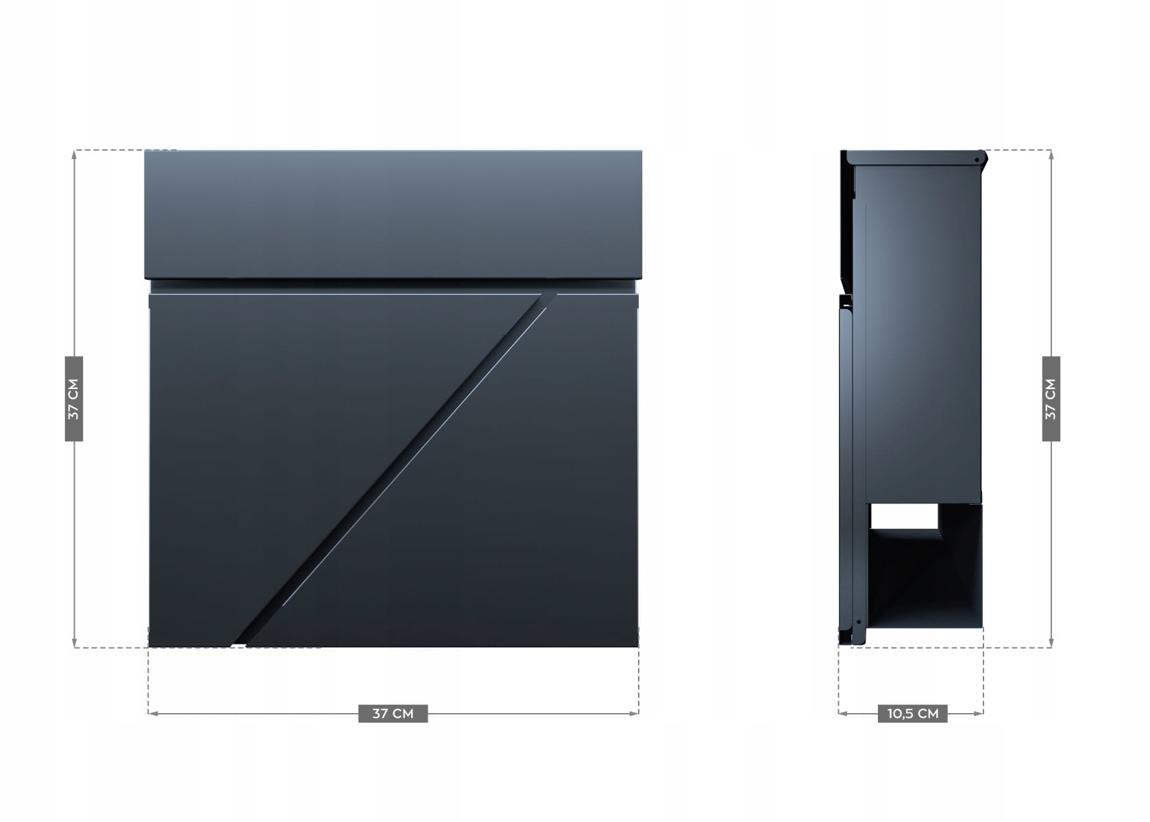 Antracytowa kolorystyka oraz ciekawy designerski styl skrzynki dobrze komponują się z każdego rodzaju powierzchnią, bez względu na jej strukturę oraz barwę. Skrzynka świetnie pasuje zarówno do nowoczesnych jak i tradycyjnych budynków.