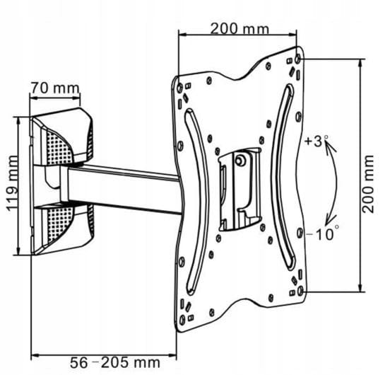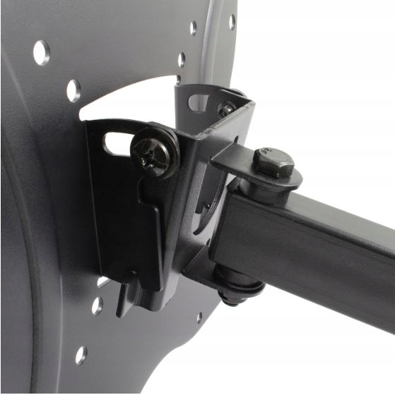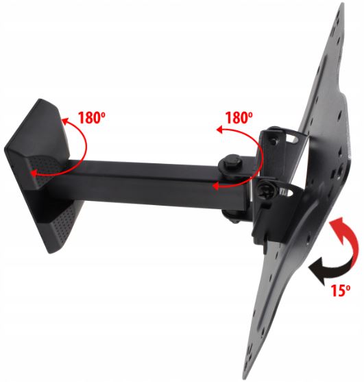 Uchwyt posiada regulację kąta nachylenia w górę i w dół +2 /-15° i na boki 180°. Zadbano w produkcie o to aby odległość od ściany i TV była niewie