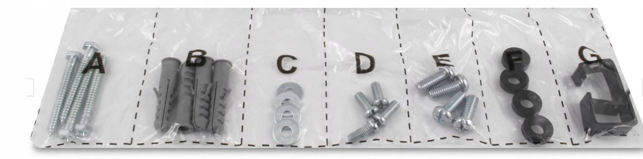 Do zestawu dołączony jest cały komplet montażowy (śruby te pasują do większości telewizorów dostępnych na rynku):