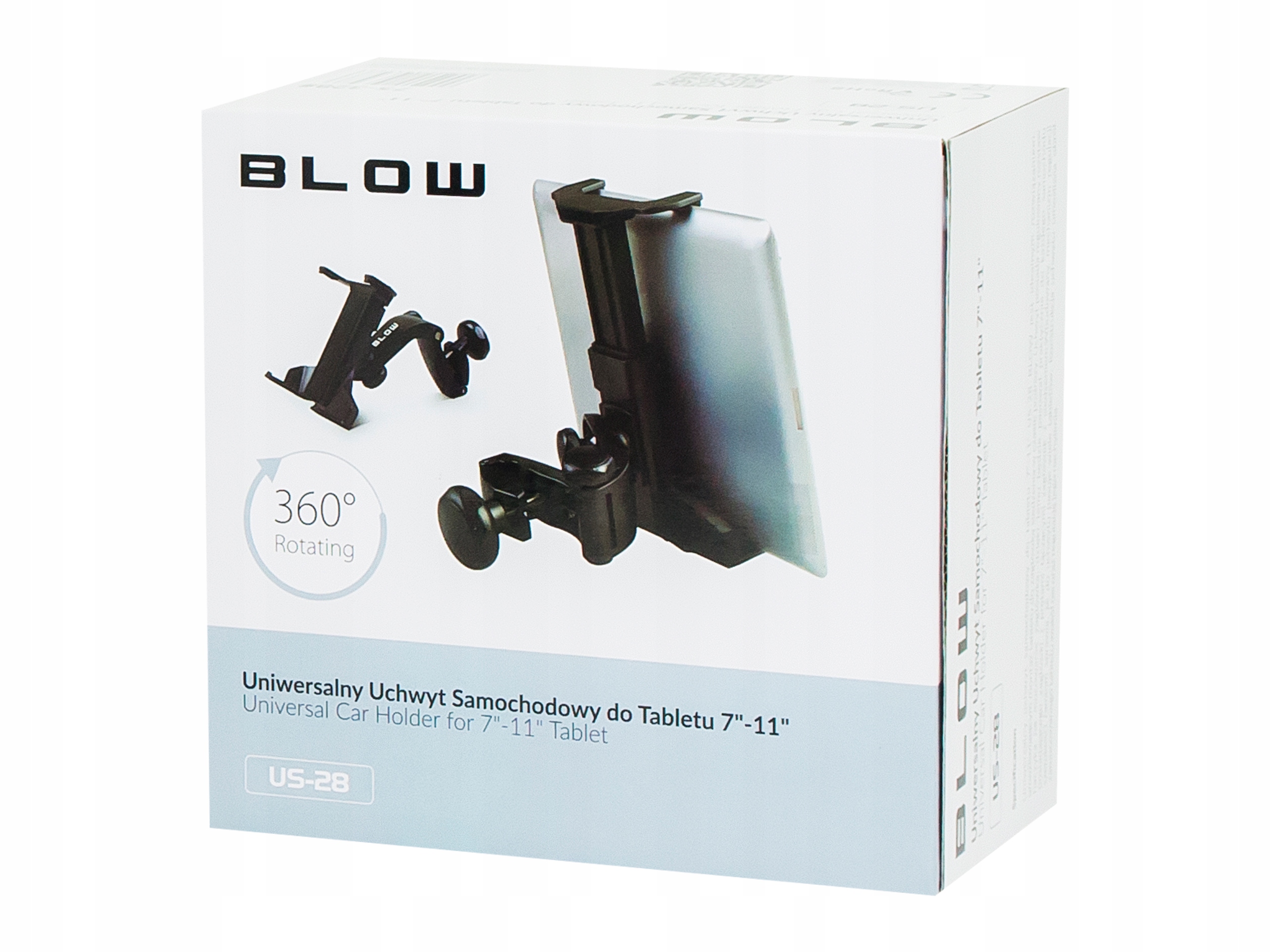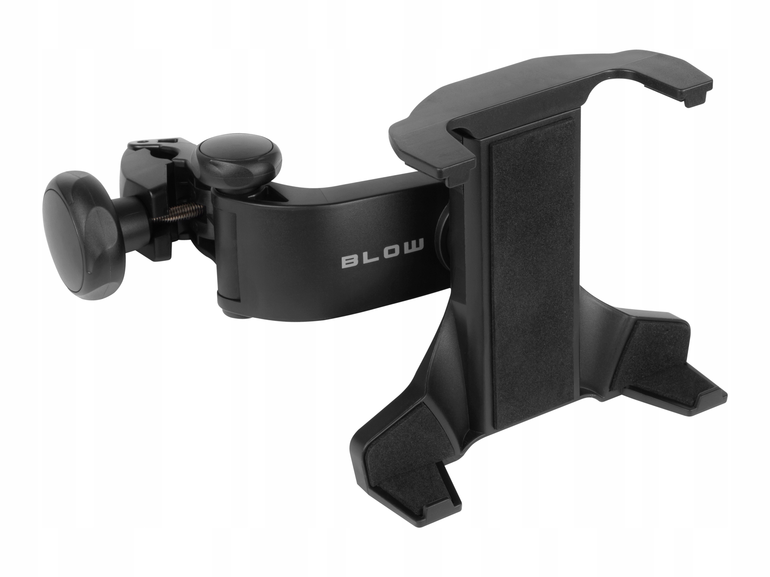 Uniwersalny uchwyt samochodowy na zagłówek przeznaczony do tabletów o przekątnej od 7 do 12 cali z możliwością regulacji nachylenia oraz obrotu wokół własnej osi w zakresie 360 stopni. Do produkcji uchwytów BLOW wykorzystano starannie dobrane materiały wysokiej jakości które zapewnią trwałość produktu na długi okres użytkowania.