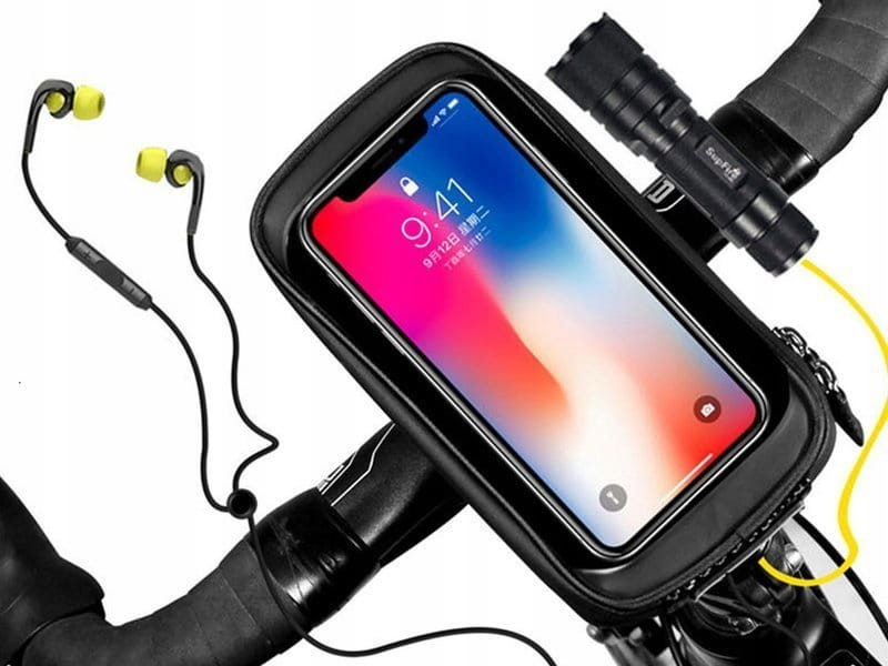Uchwyt został wykonany ze wzmocnionego tworzywa PU, TPU oraz EVA, dzięki czemu jest niezwykle wytrzymały. Etui wyposażono w 3 mocne paski na rzep, ułatwiające samodzielny montaż pokrowca na kierownicy roweru.