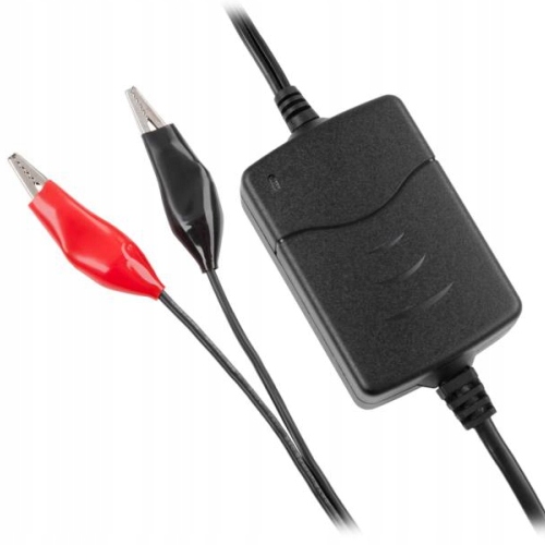 Ładowarka pozwalająca naładować akumulatory żelowe 6 i 12V DC prądem 1.8A. Podłącza się ją do europejskiego gniazdka sieciowego.