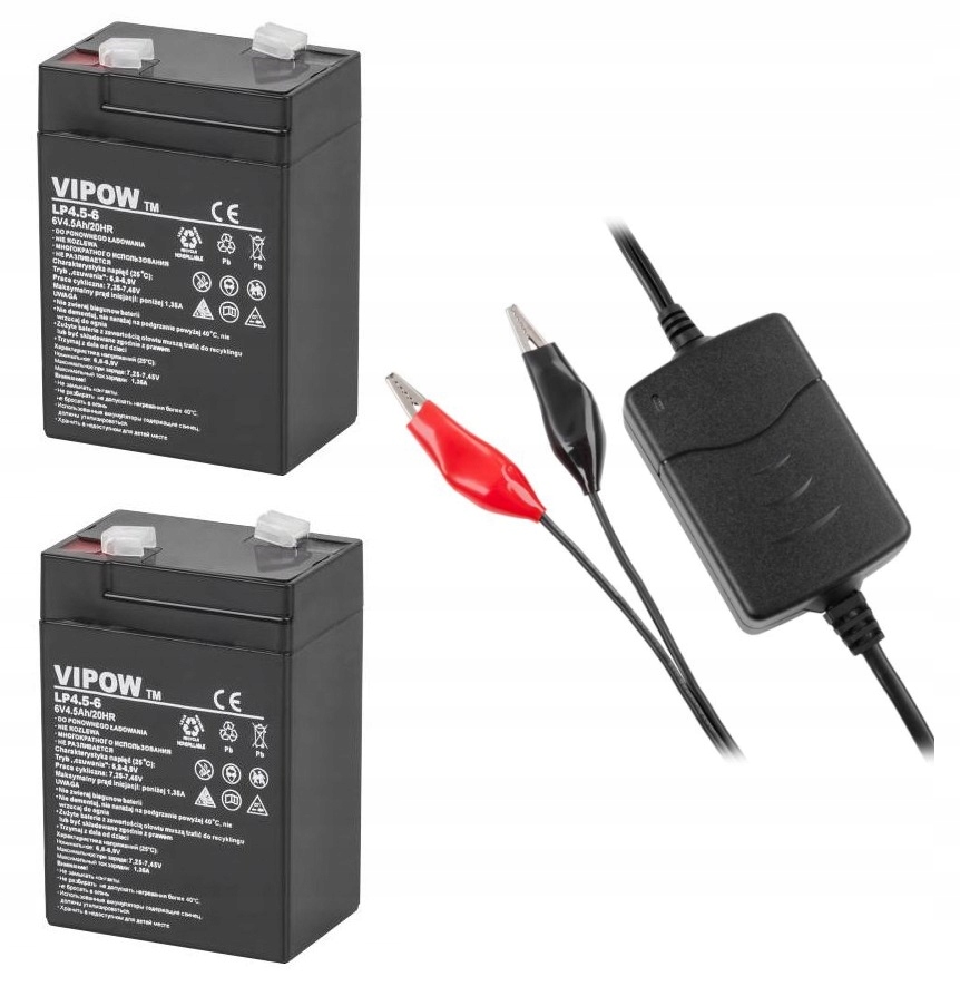 ZESTAW DO AUTKA 2x akumulator VIPOW/REBEL/EXTREME 6V 4,5A +ładowarka