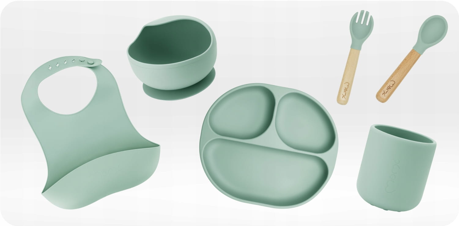 ZESTAW NACZYŃ DO KARMIENIA DLA DZIECI - MoMi AMI ZIELONY - SILIKONOWY