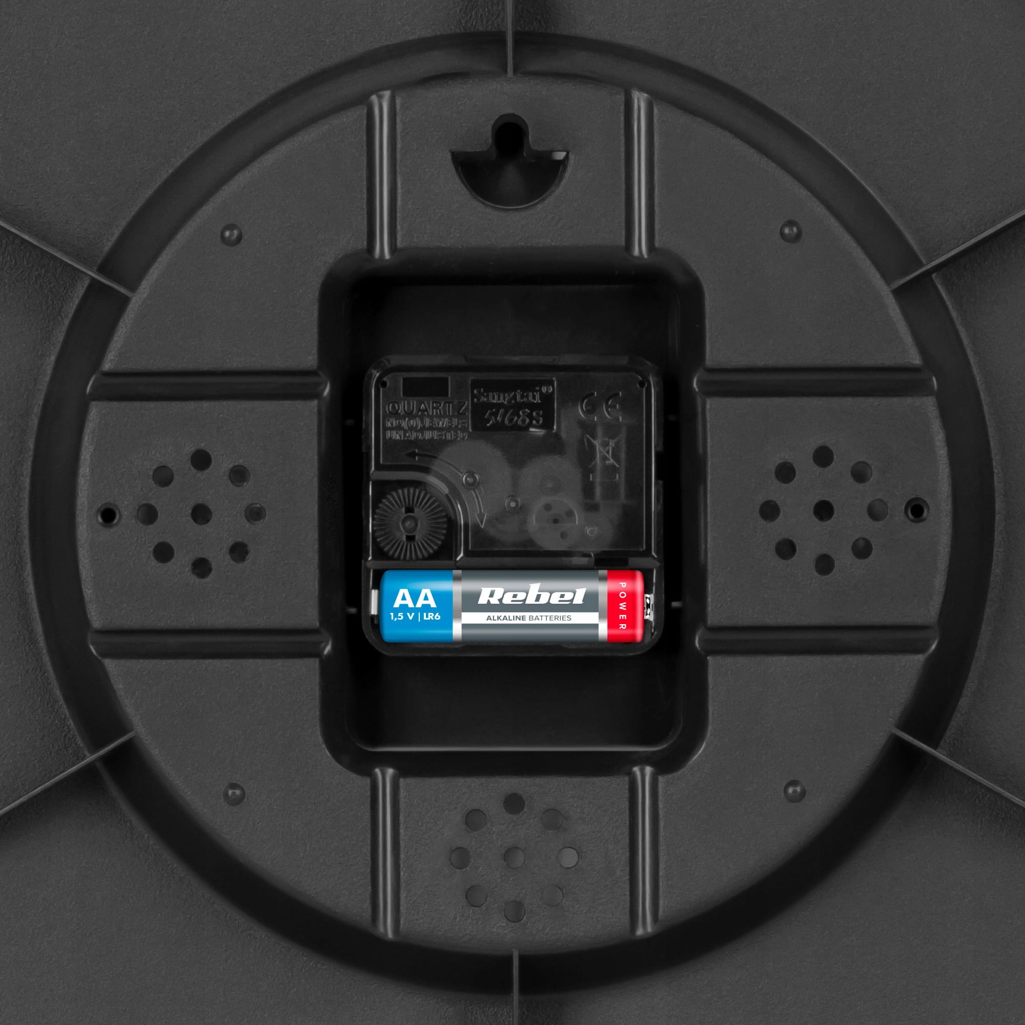 Zegar zasilany jest za pomocą standardowej baterii AA, co sprawi, że jest wyjątkowo łatwy w użytkowaniu. Brak przewodów sprawia, że można go umieścić w dowolnym miejscu – wystarczy zawiesić go na ścianie, wykorzystując praktyczny otwór montażowy. Energooszczędny mechanizm pozwala na długotrwałą pracę na jednej baterii, minimalizując konieczność częstej wymiany.