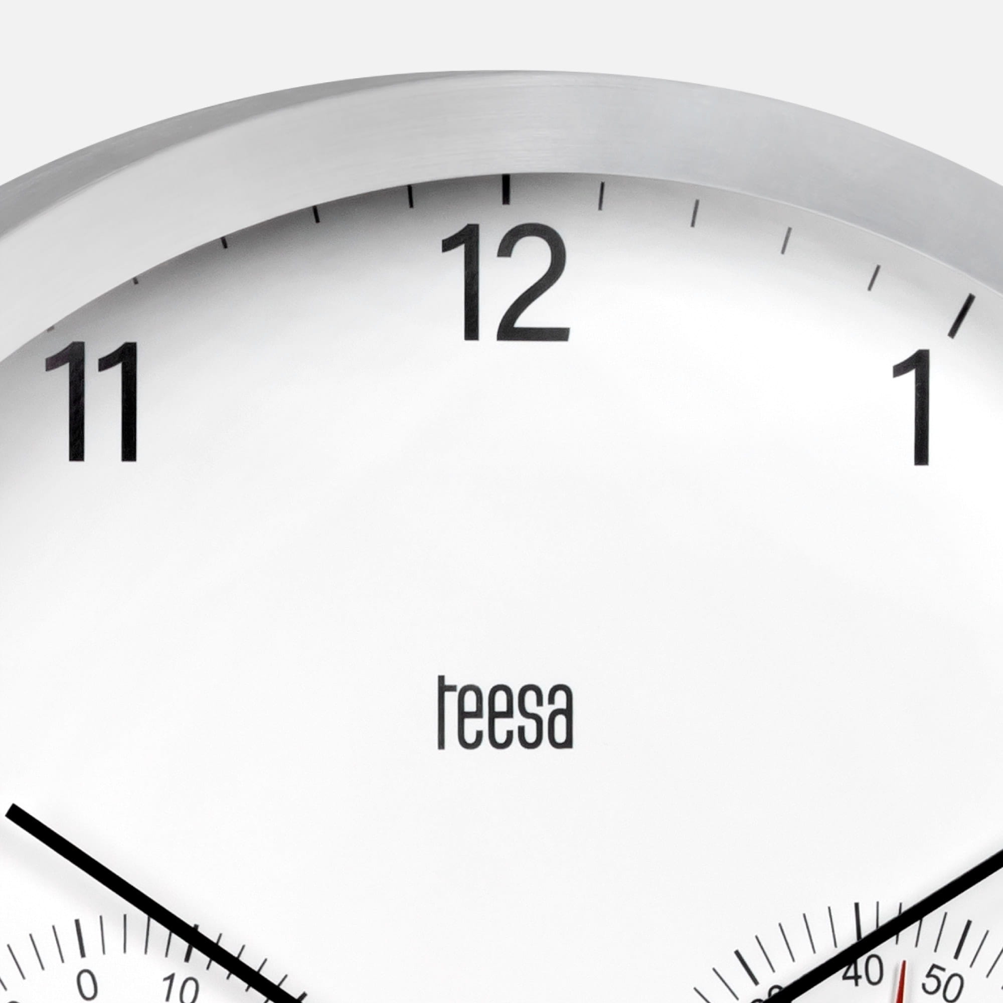 Zegar ścienny Teesa o średnicy 30 cm to praktyczne i funkcjonalne rozwiązanie o uniwersalnym zastosowaniu. Jeśli więc interesuje Cię zegar na ścianę do kuchni lub pokoju, biura albo salonu Teesa spełni Twoje oczekiwania.