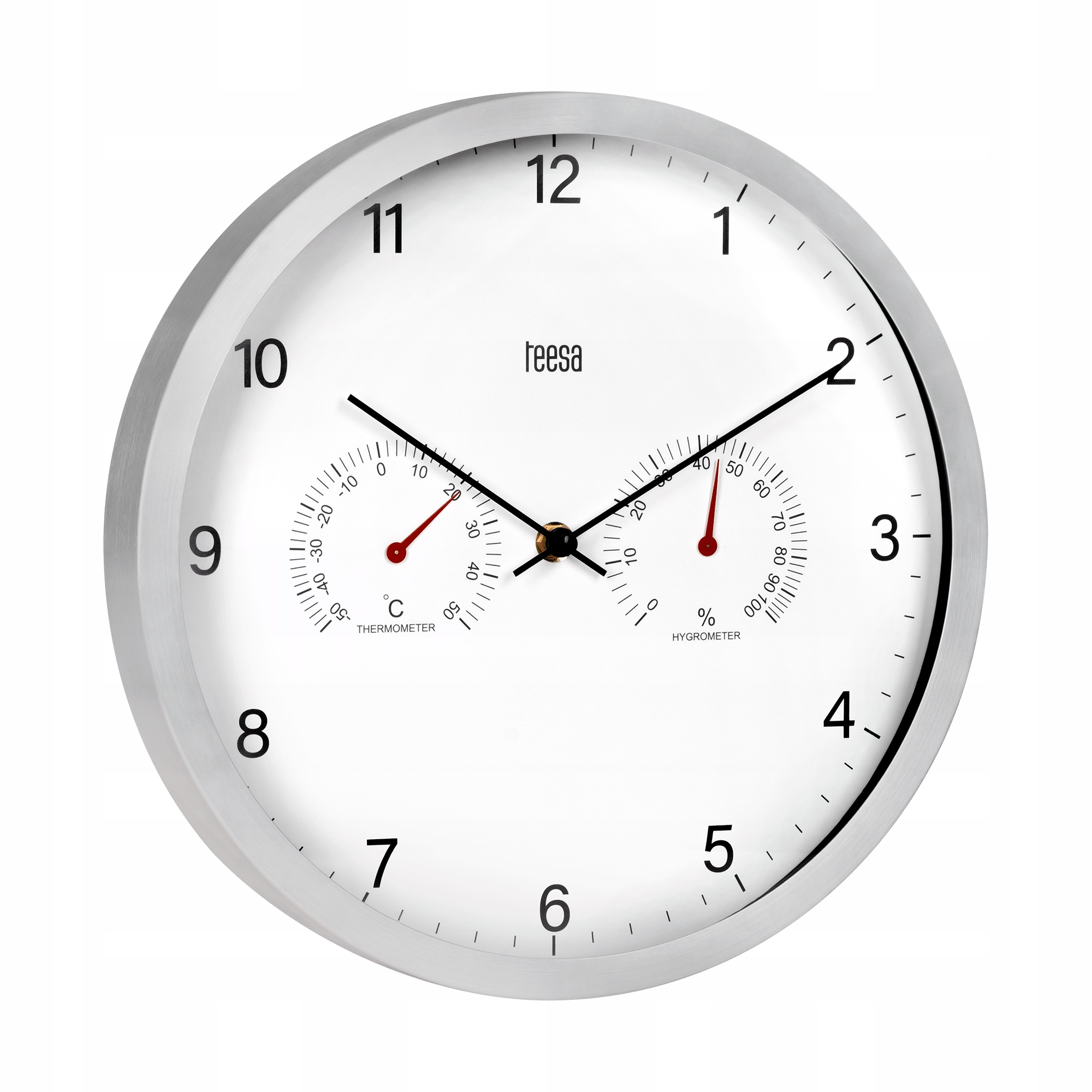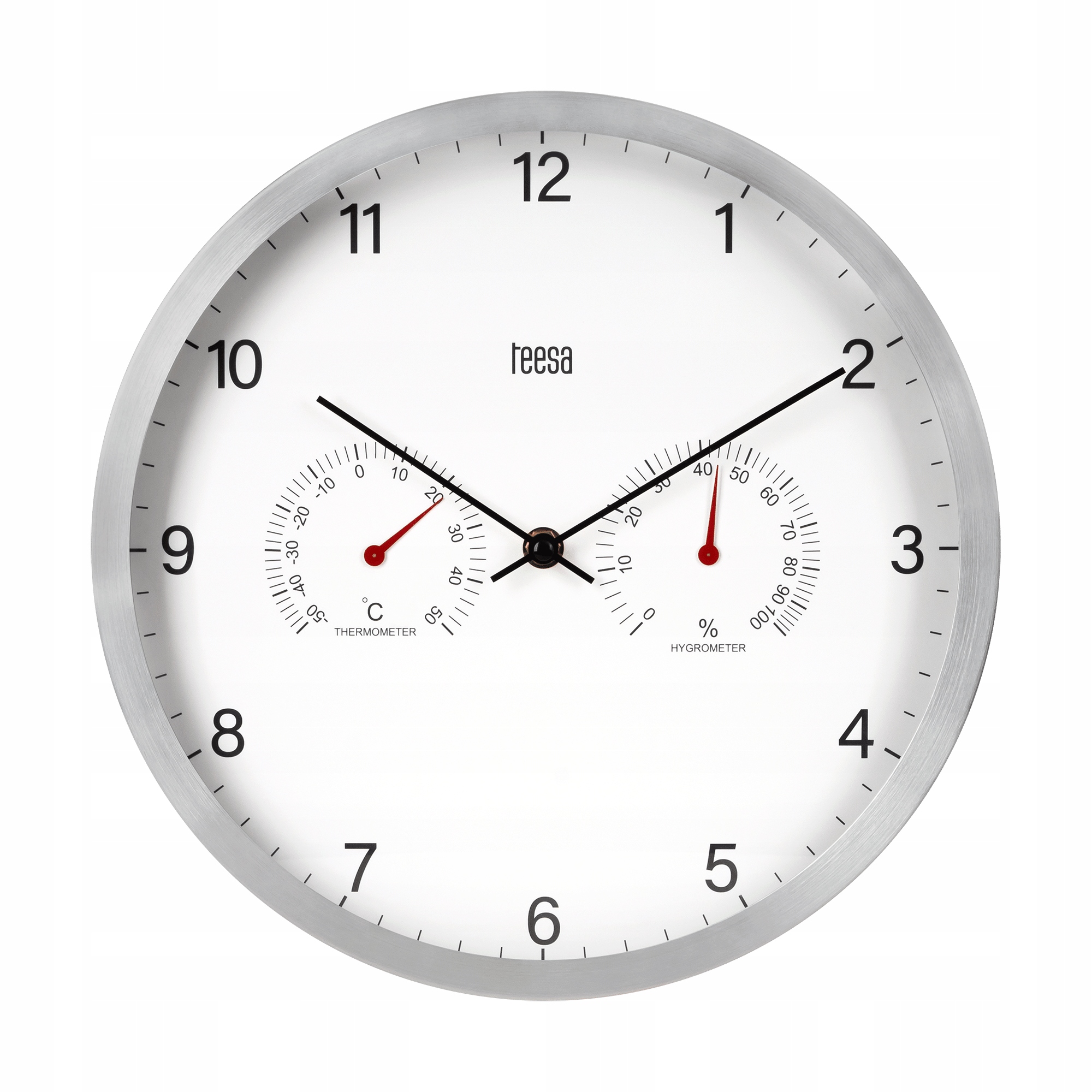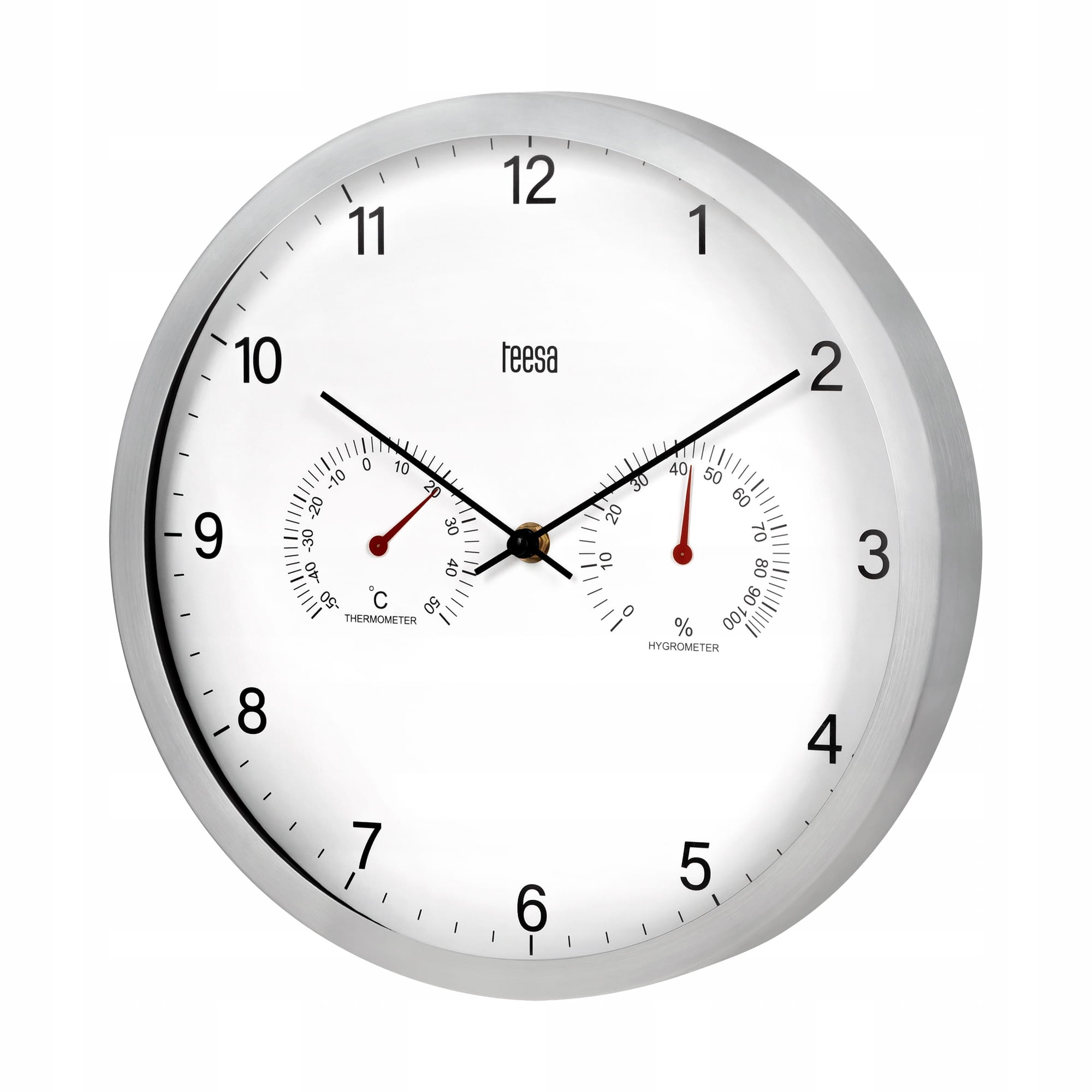 Aluminiowy zegar ścienny 30cm z termometrem i hydrometrem